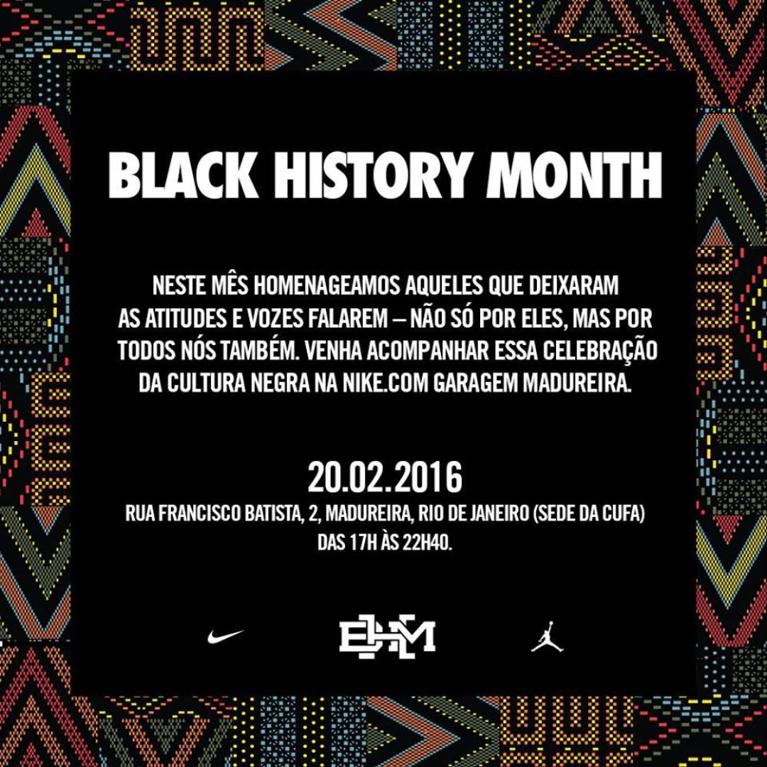 O Black History Month é uma tradição diaspórica que com muito orgulho pôde trazer uma interpretação para o Brasil. Para lançar uma linha de tênis inspiradas nas experiências negras ao redor do mundo, levou a Nike ao Bairro de Madureira para um evento envolvendo grafite, música, moda e empoderamento. Os tênis esgotaram em tempo recorde e o engajamento dos funcionários na história foi imenso.